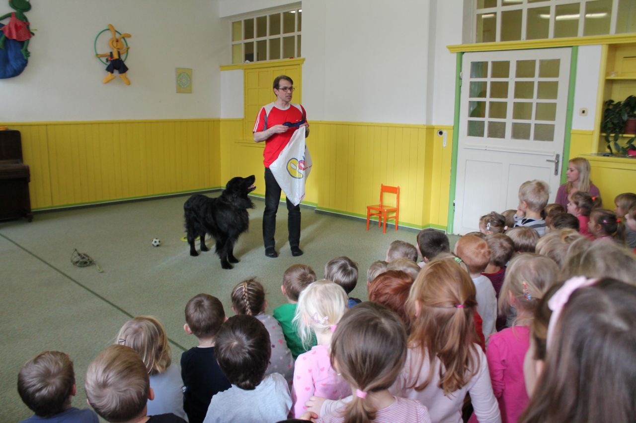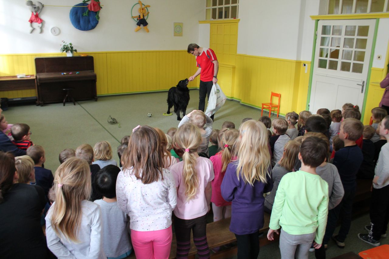 Výchovně vzdělávací program pro děti s vycvičeným psem jménem Sorbon a jeho pánem Zdeňkem Zaoralem.