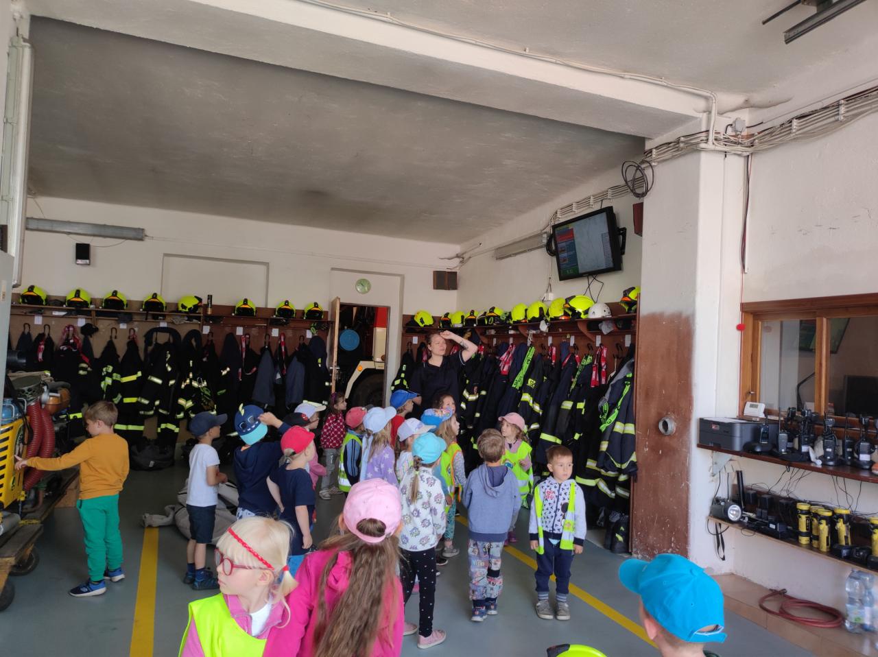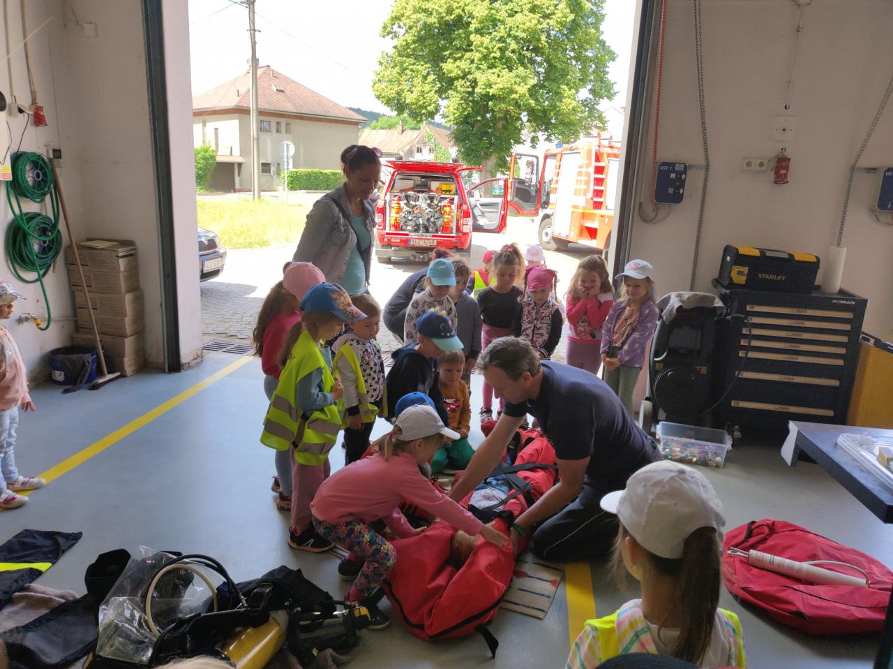 Ukázka hasičské stanice, výbavy a výstroje.