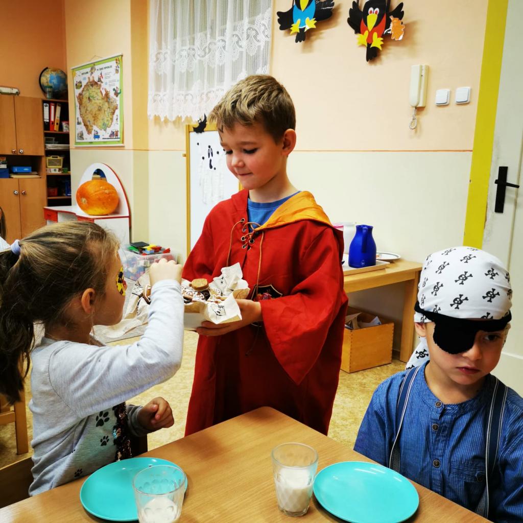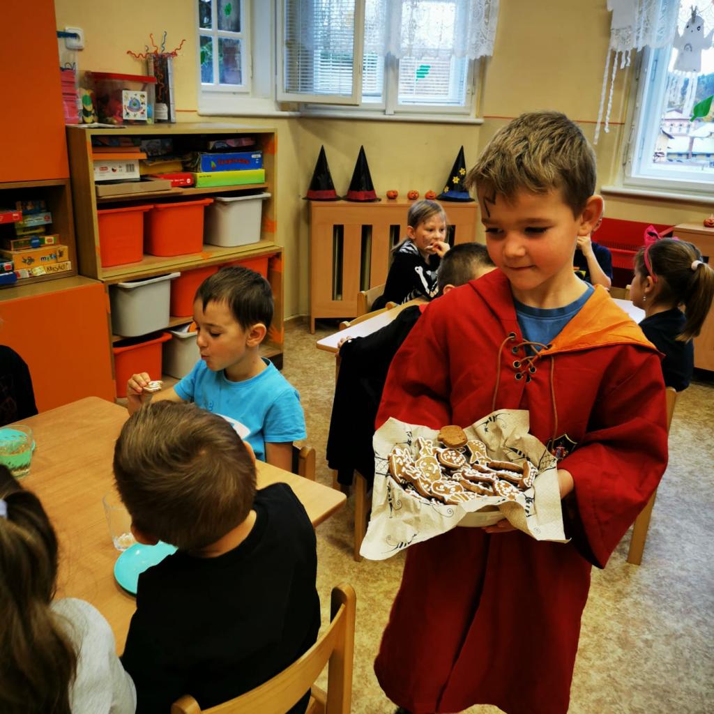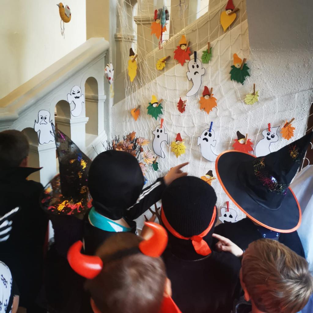 Dne 2. 11. byla naše škola plná strašidel, čarodějů, netopýrů pavouků a dalších strašidelných bytostí. Děti plnily úkoly a nakonec také objevily poklad za splněné úkoly.