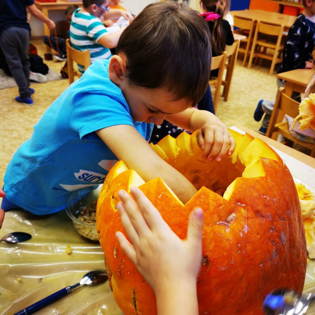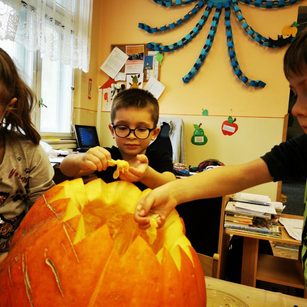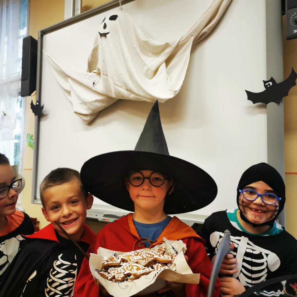 Dne 2. 11. byla naše škola plná strašidel, čarodějů, netopýrů pavouků a dalších strašidelných bytostí. Děti plnily úkoly a nakonec také objevily poklad za splněné úkoly.