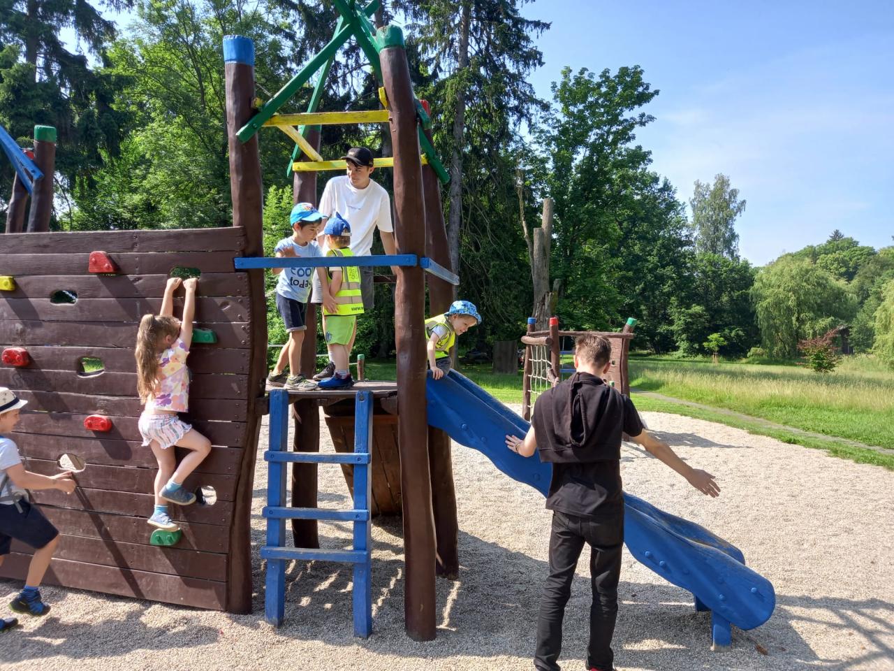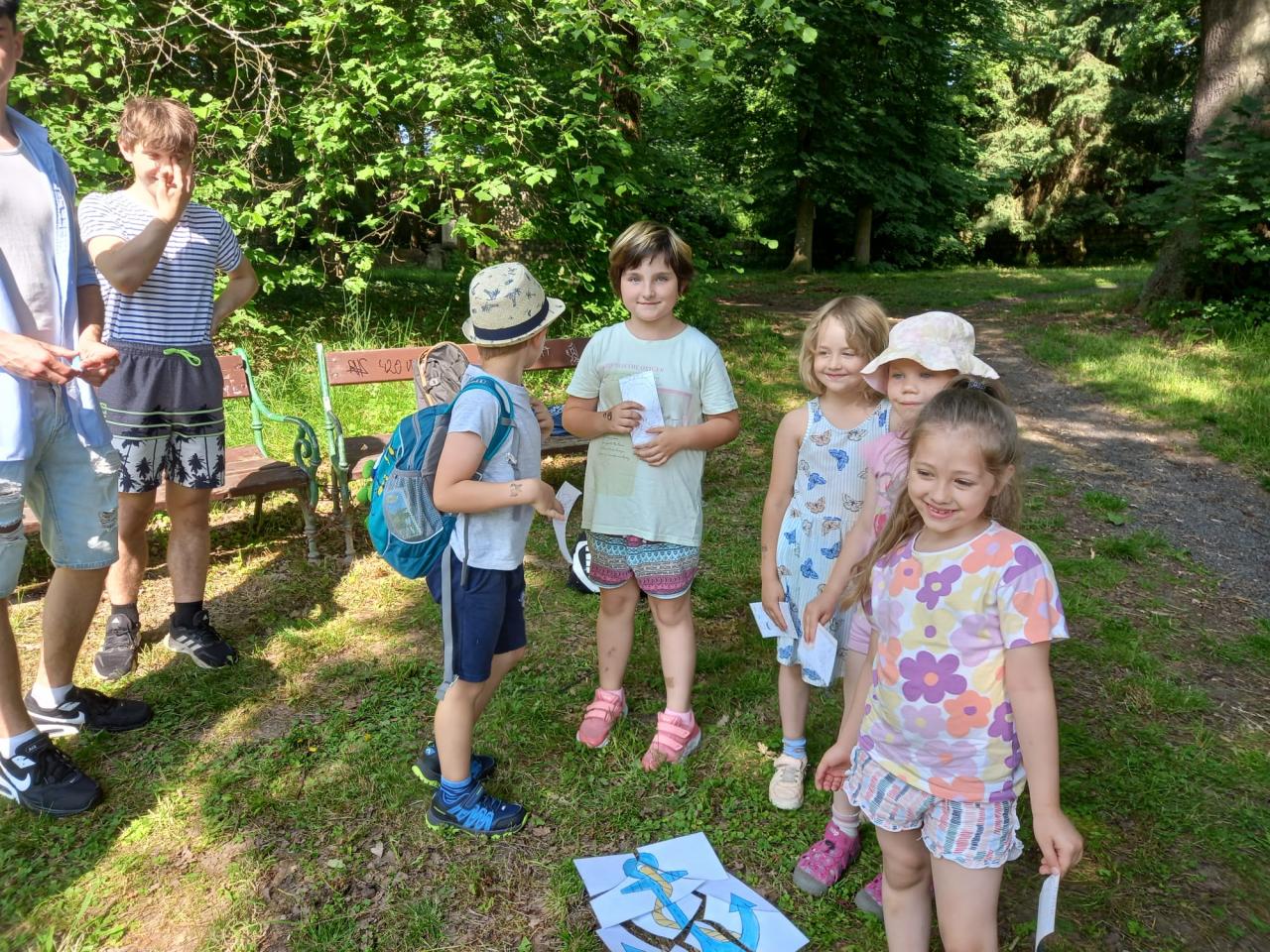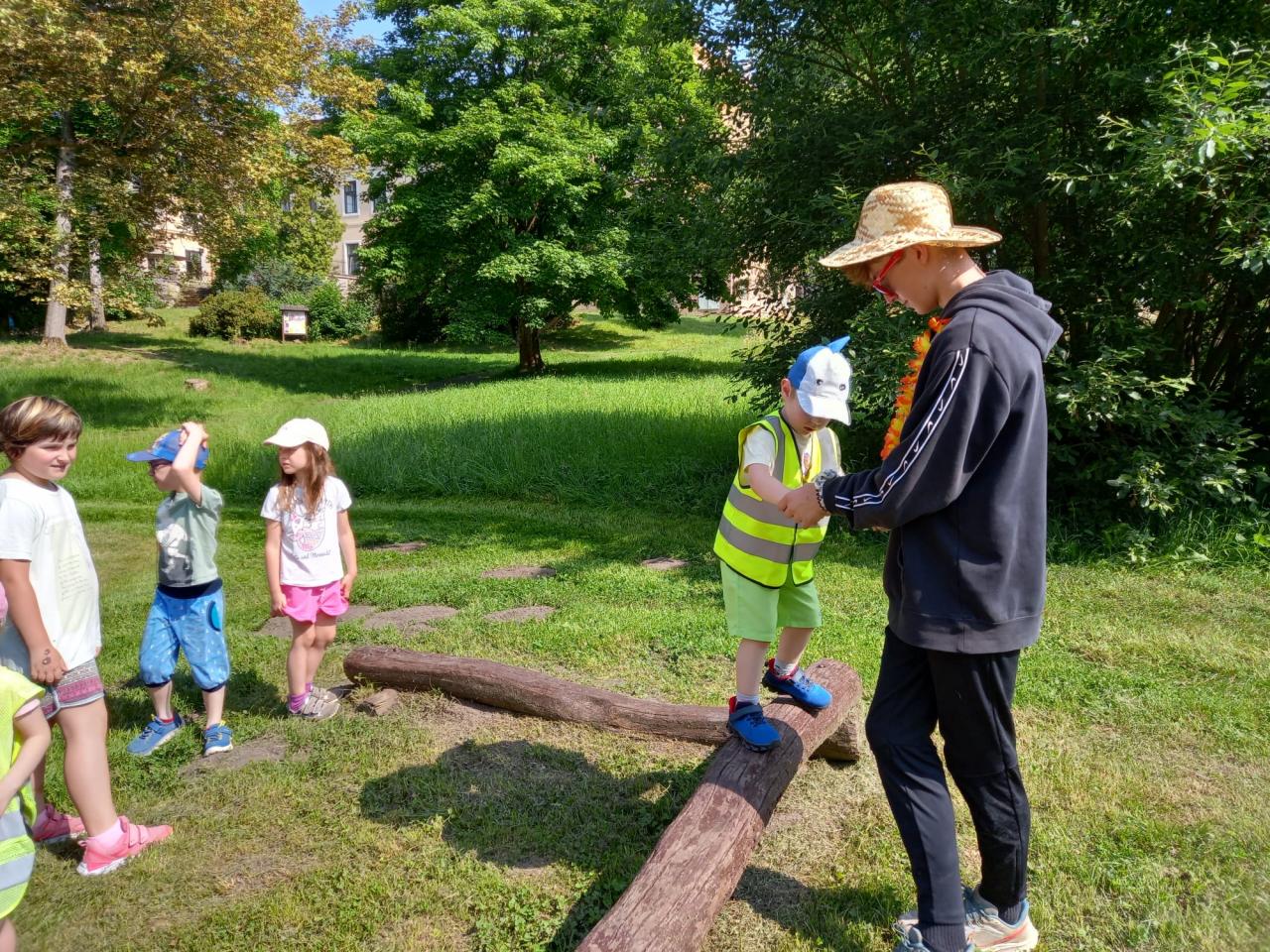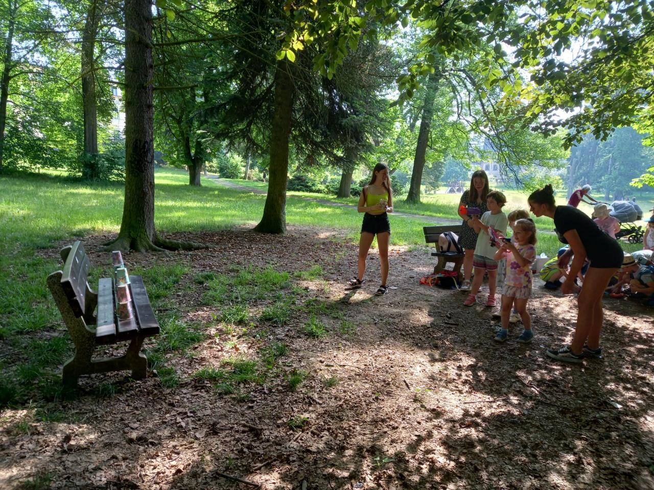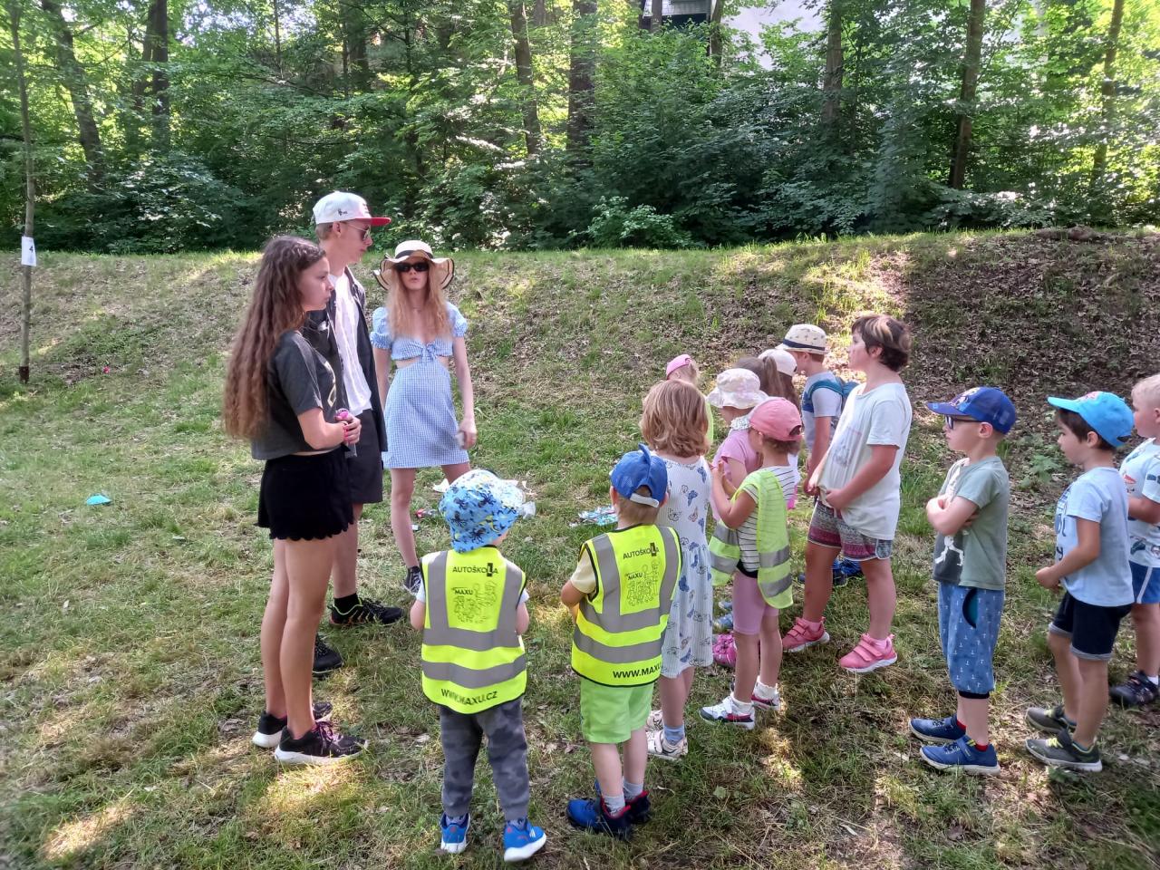 Plnění úkolů v pohádkovém parku. Připravili deváťáci ze ZŠ. Děkujeme!