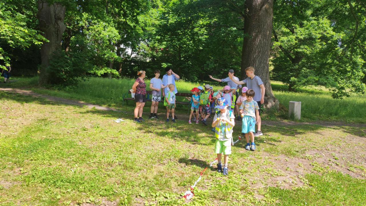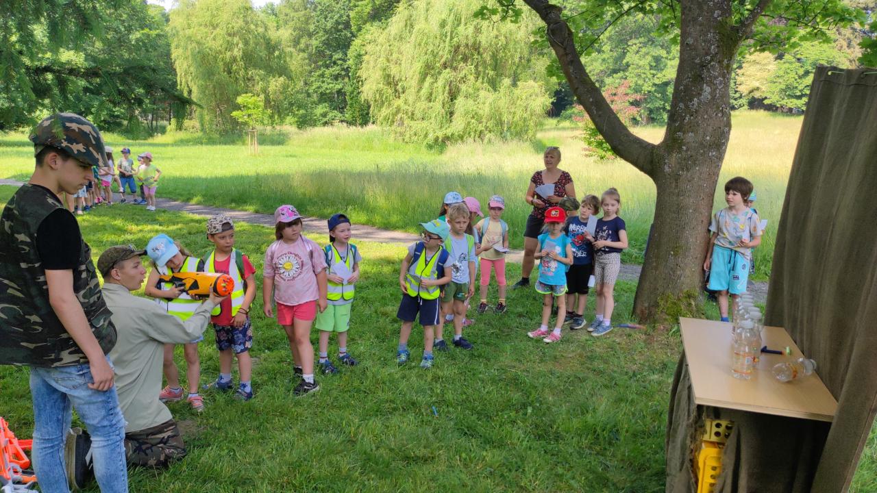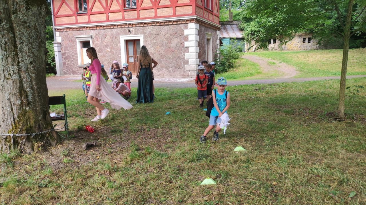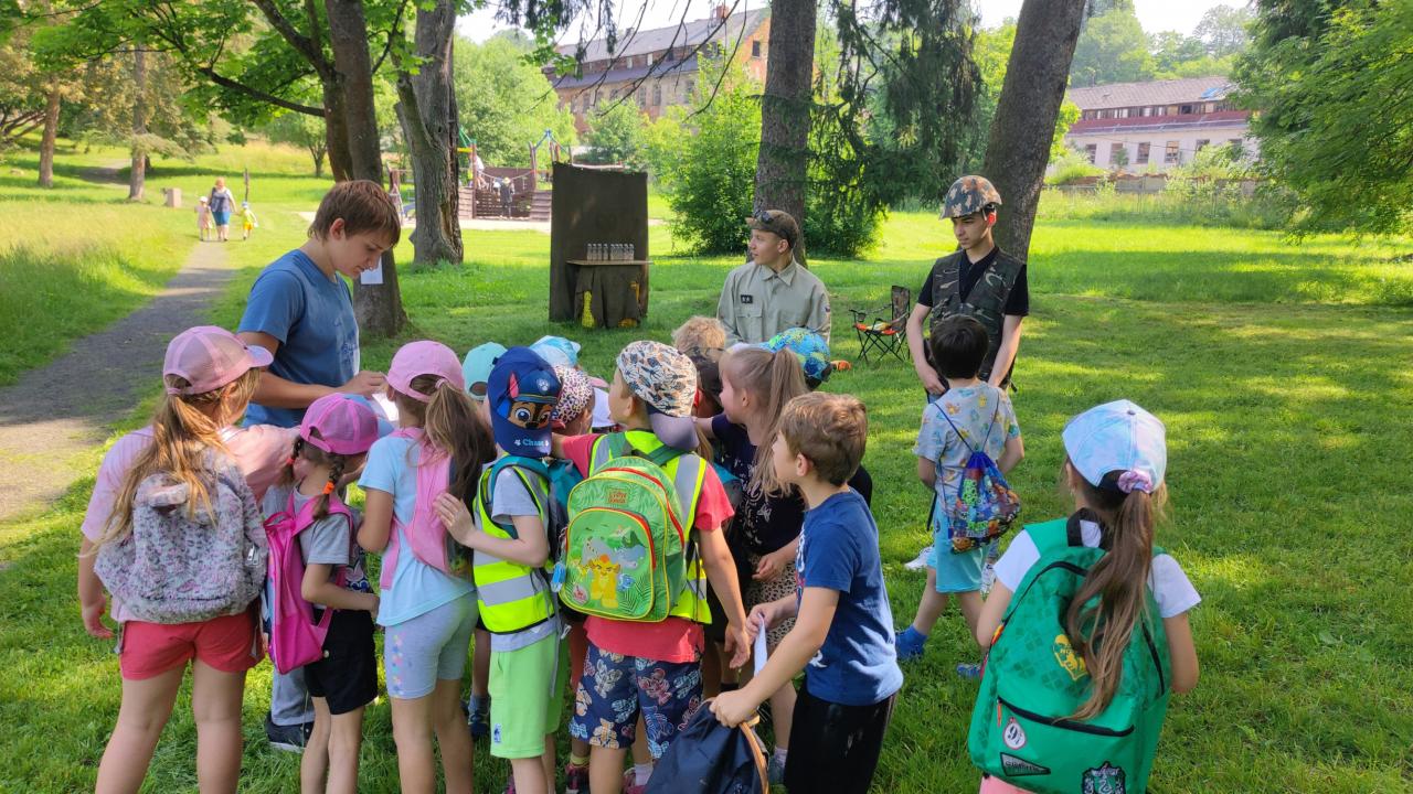 Plnění úkolů v pohádkovém parku. Připravili deváťáci ze ZŠ. Děkujeme!