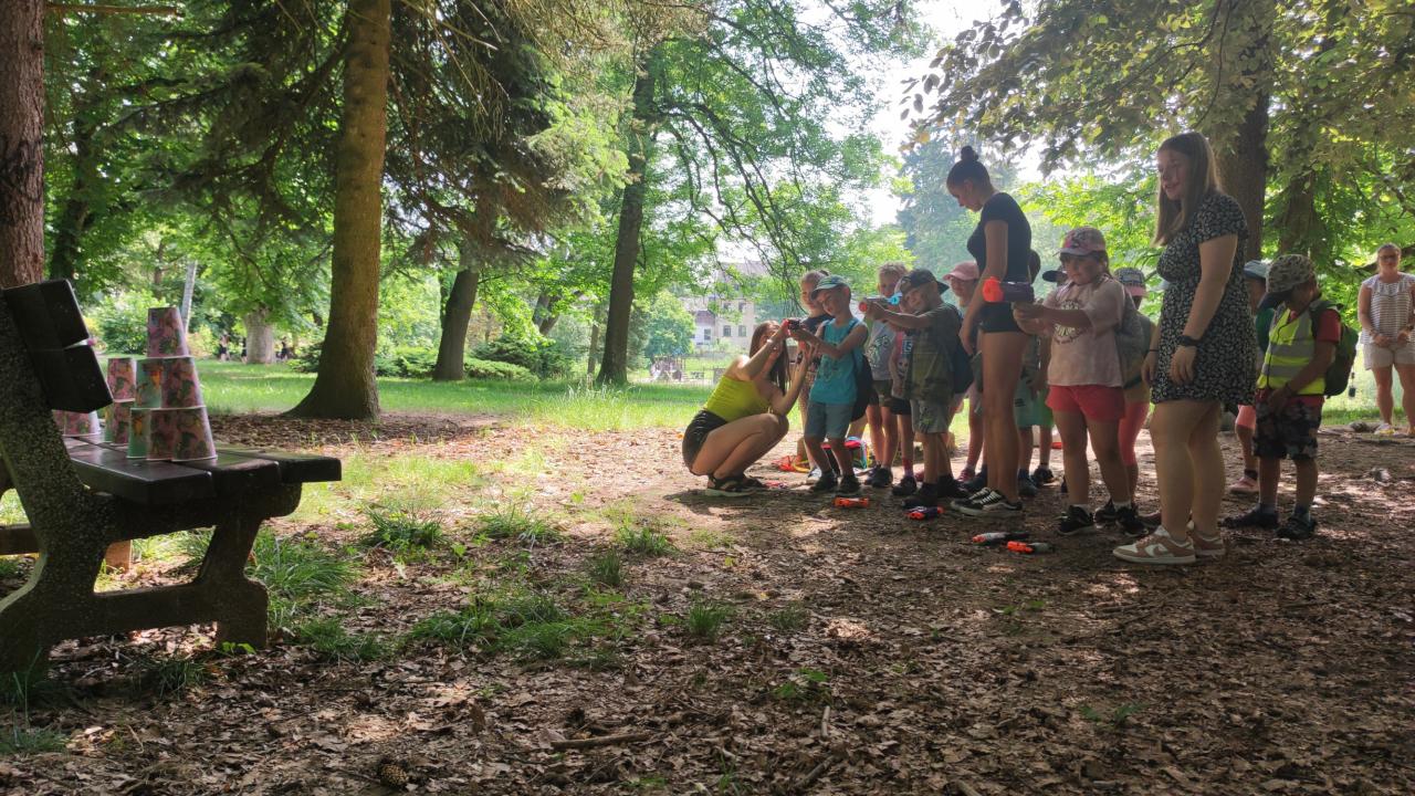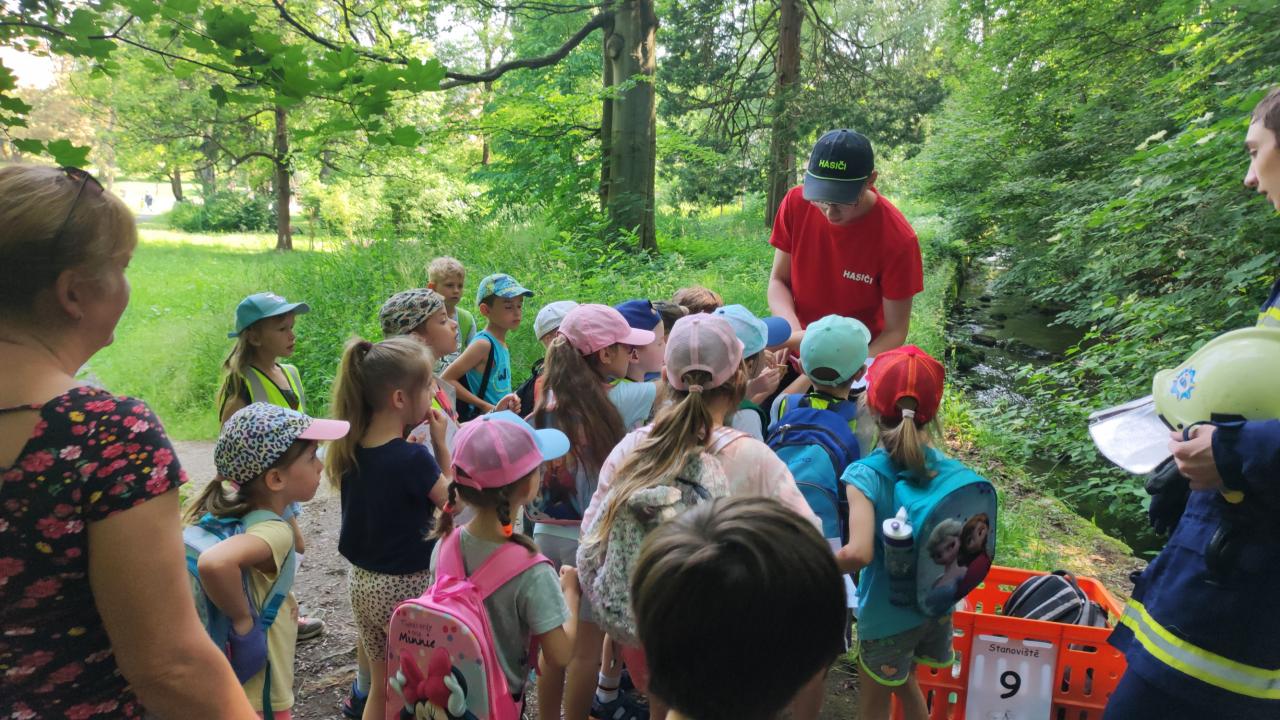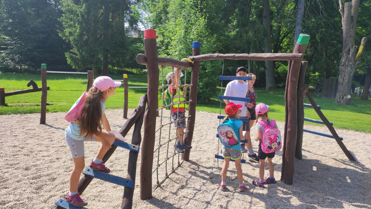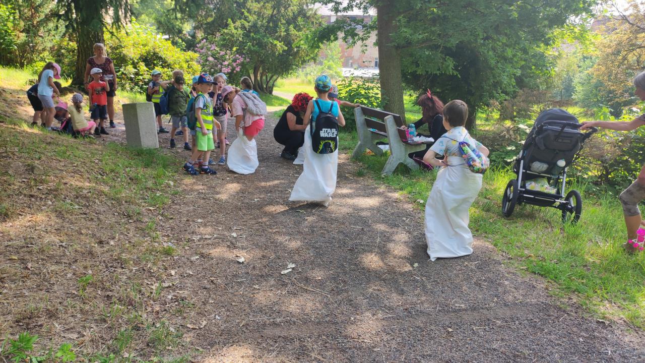 Plnění úkolů v pohádkovém parku. Připravili deváťáci ze ZŠ. Děkujeme!