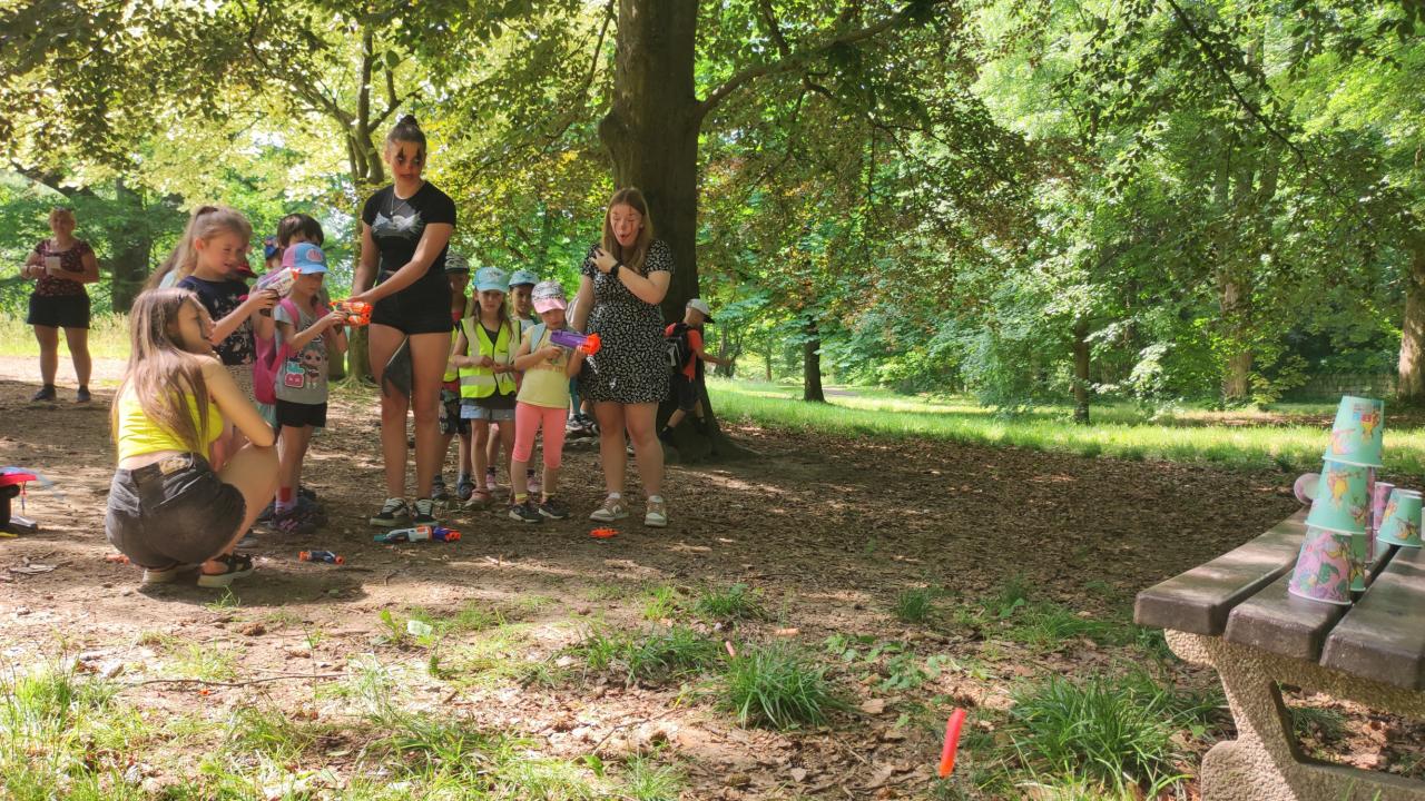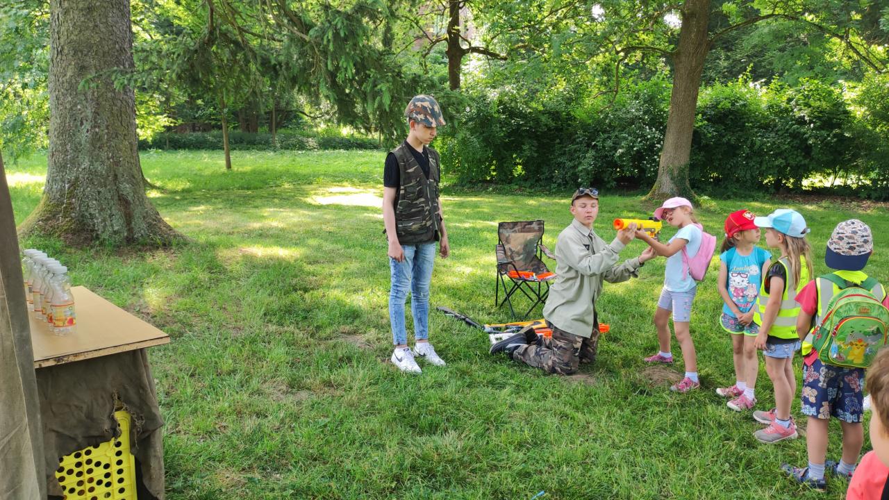 Plnění úkolů v pohádkovém parku. Připravili deváťáci ze ZŠ. Děkujeme!