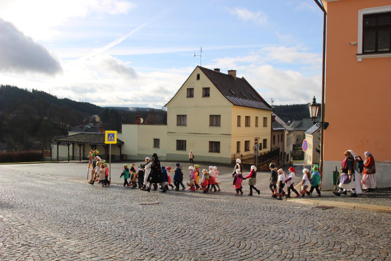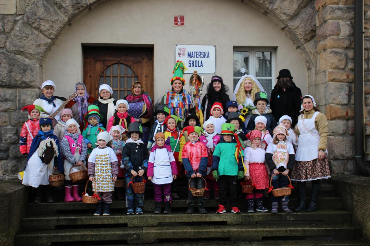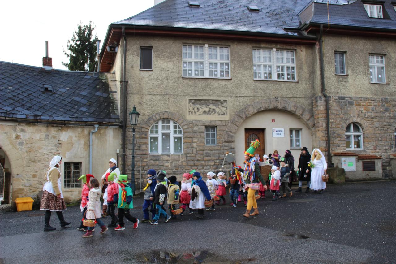 Tradiční Masopustní průvod. Za fotografie moc děkujeme panu J. Šrýtrovi.