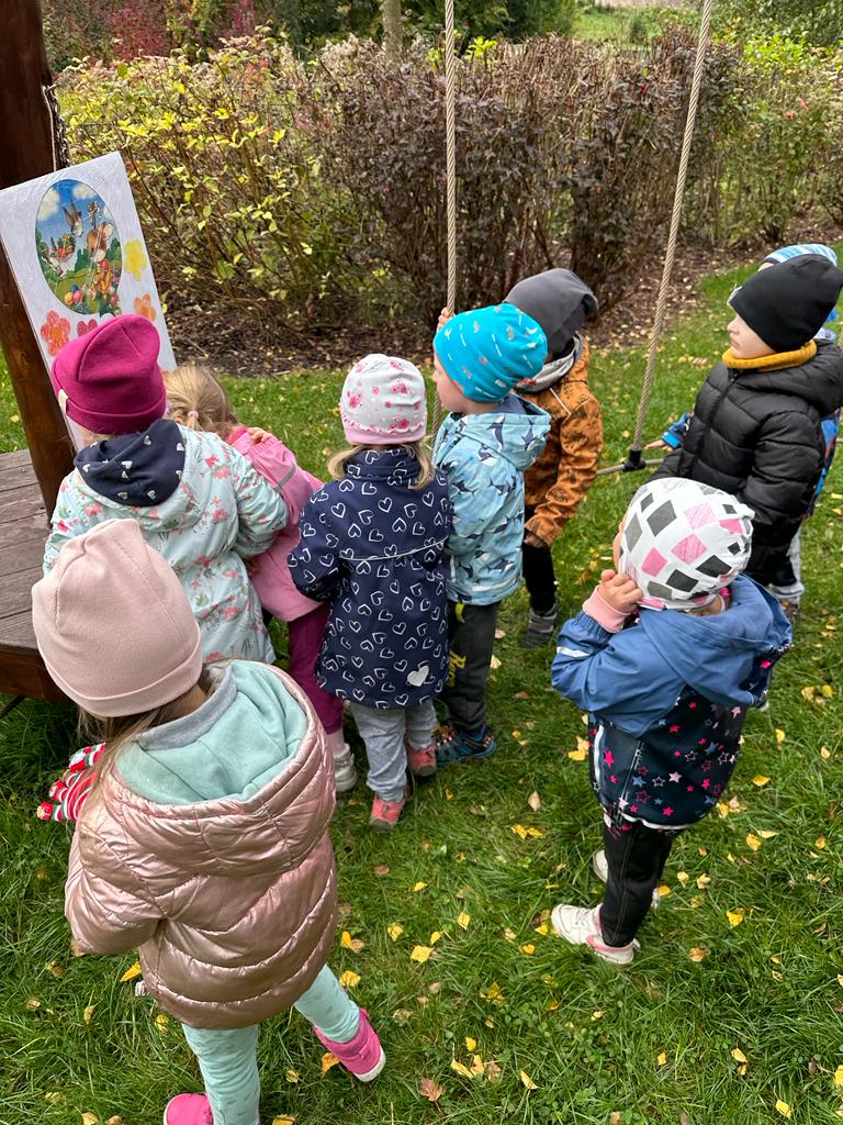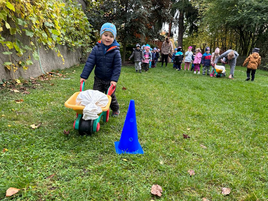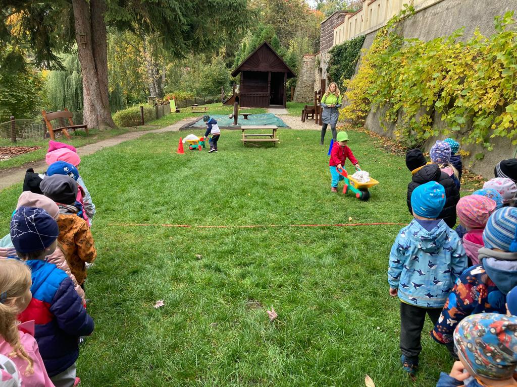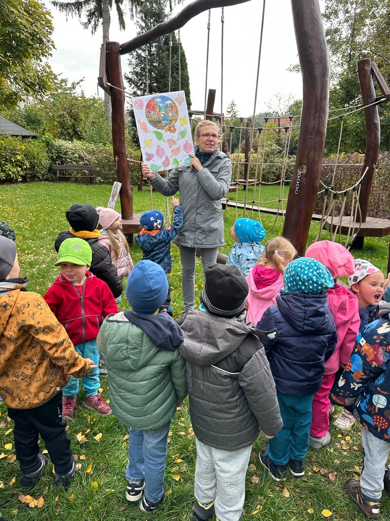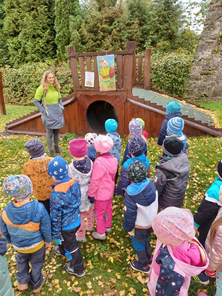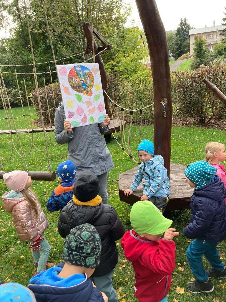 Dopolední akce zamykání zahrady se skřítkem podzimníčkem.