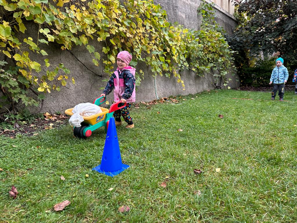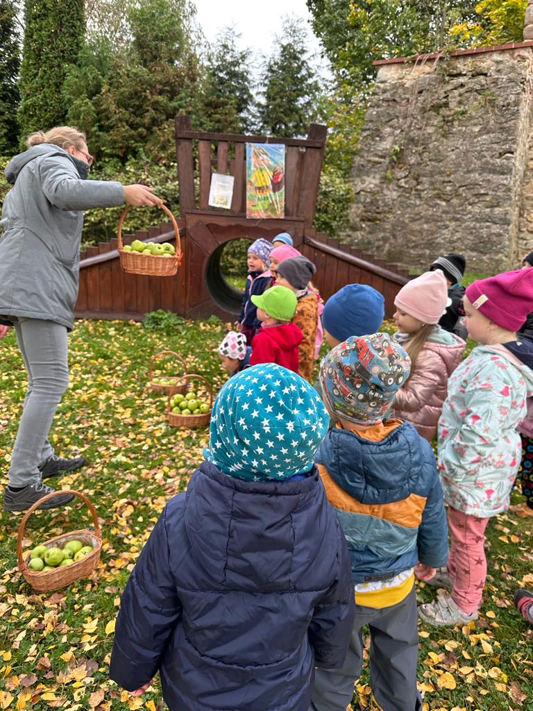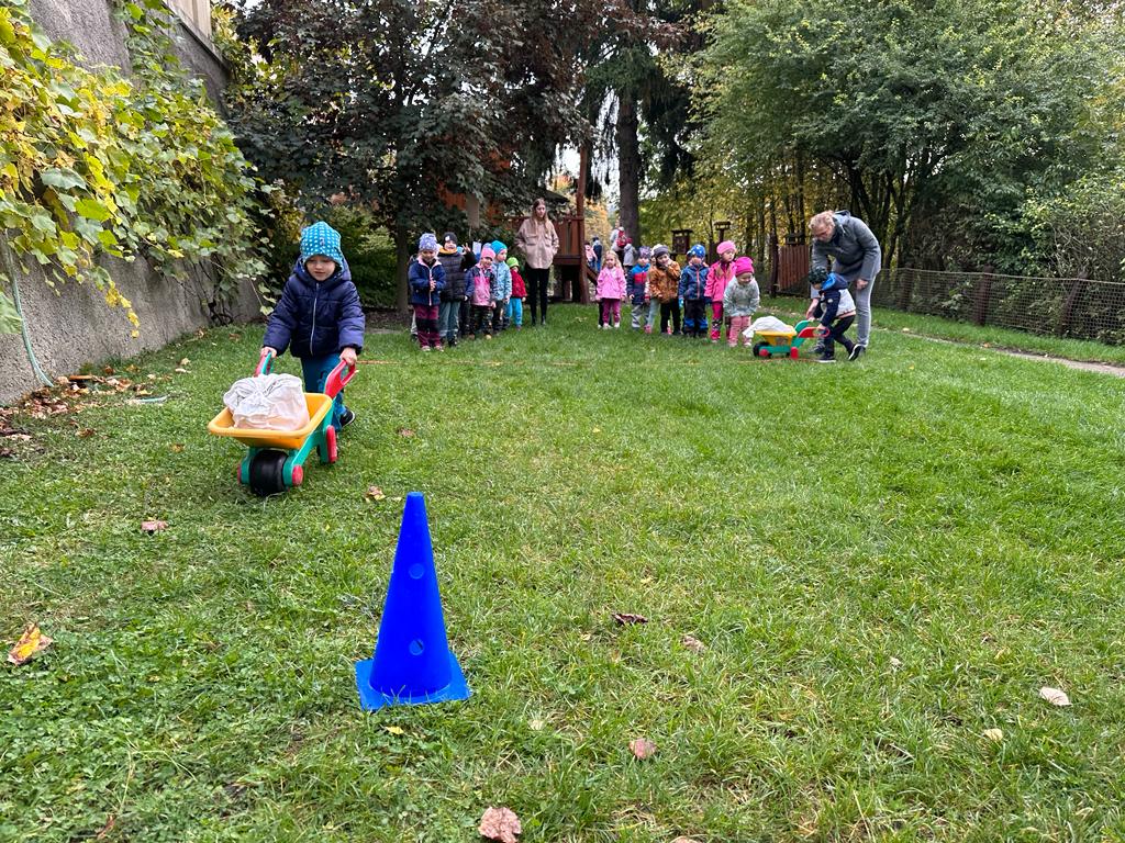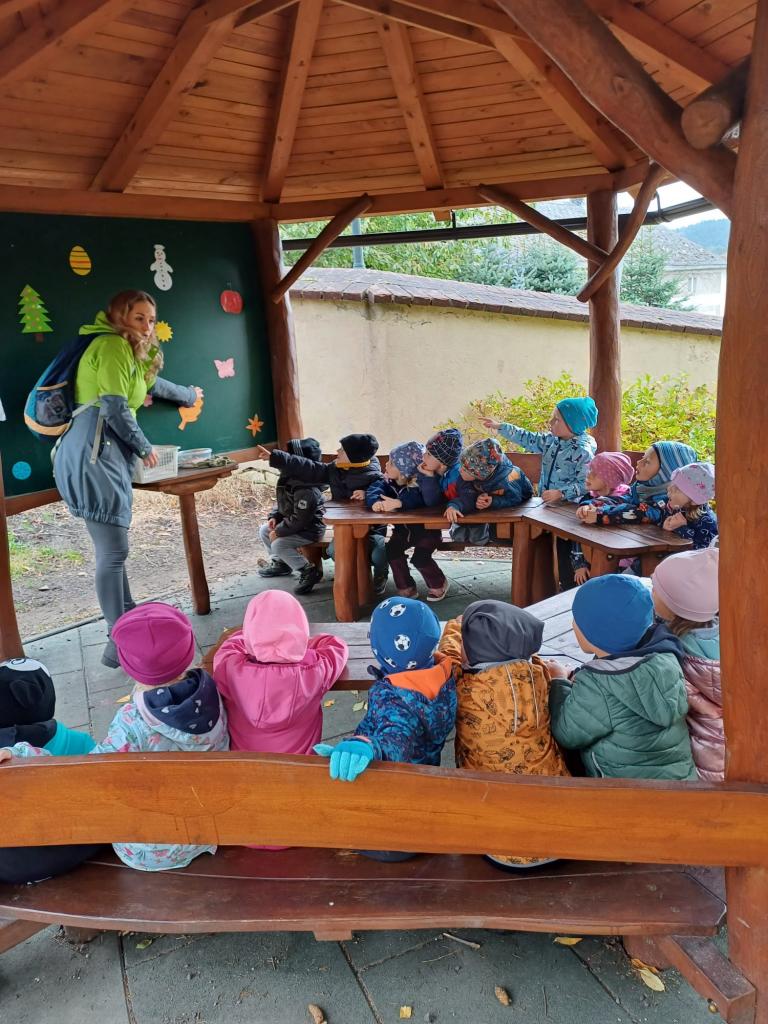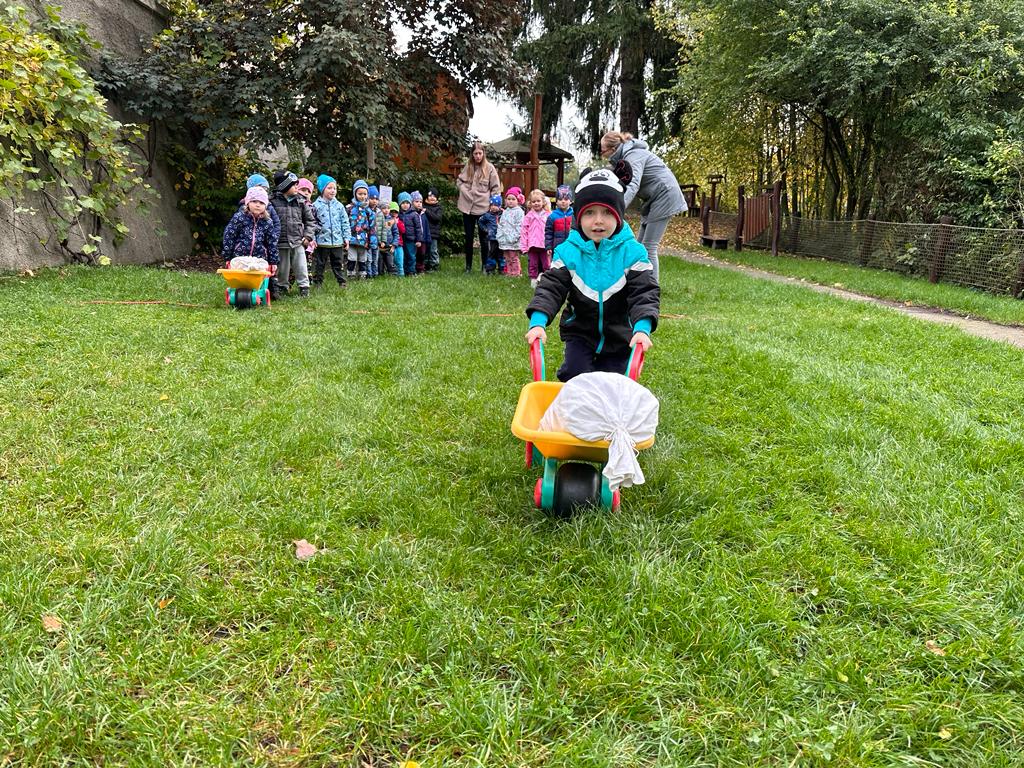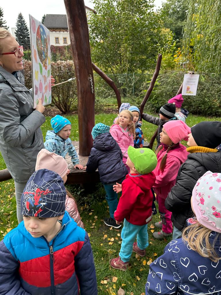 Dopolední akce zamykání zahrady se skřítkem podzimníčkem.