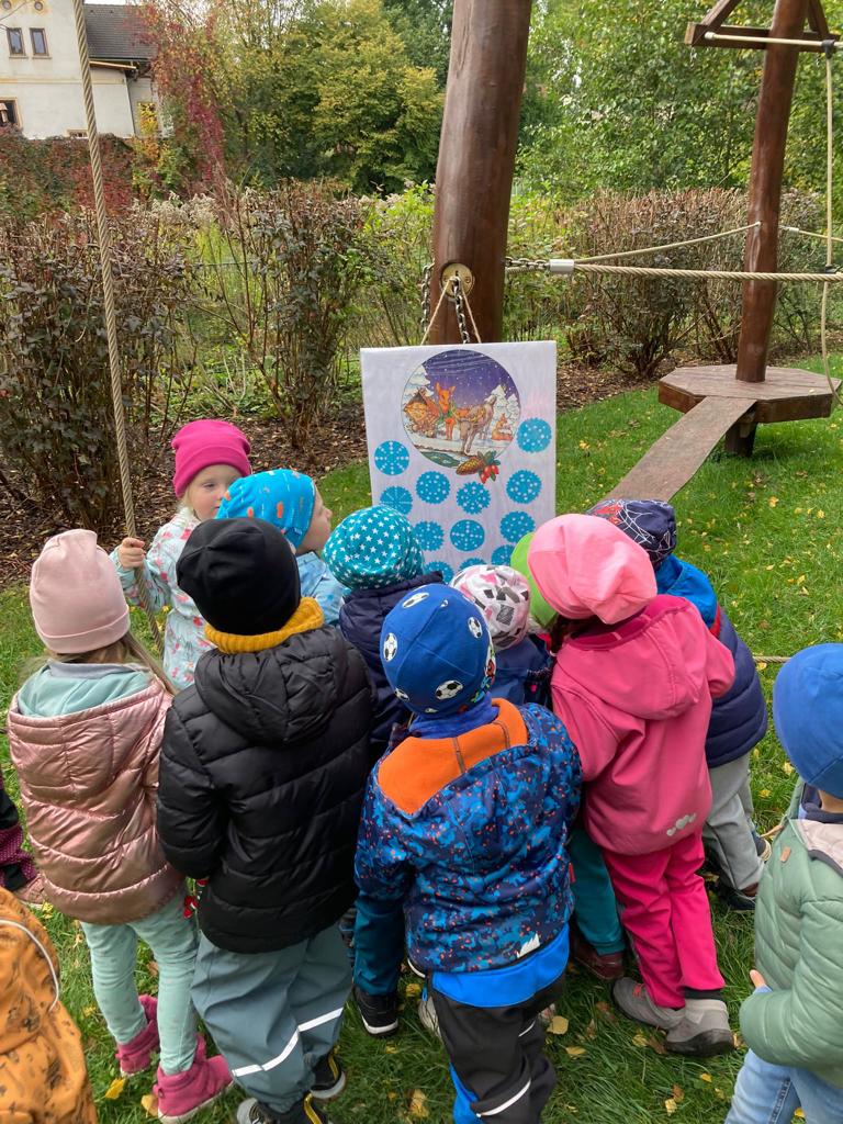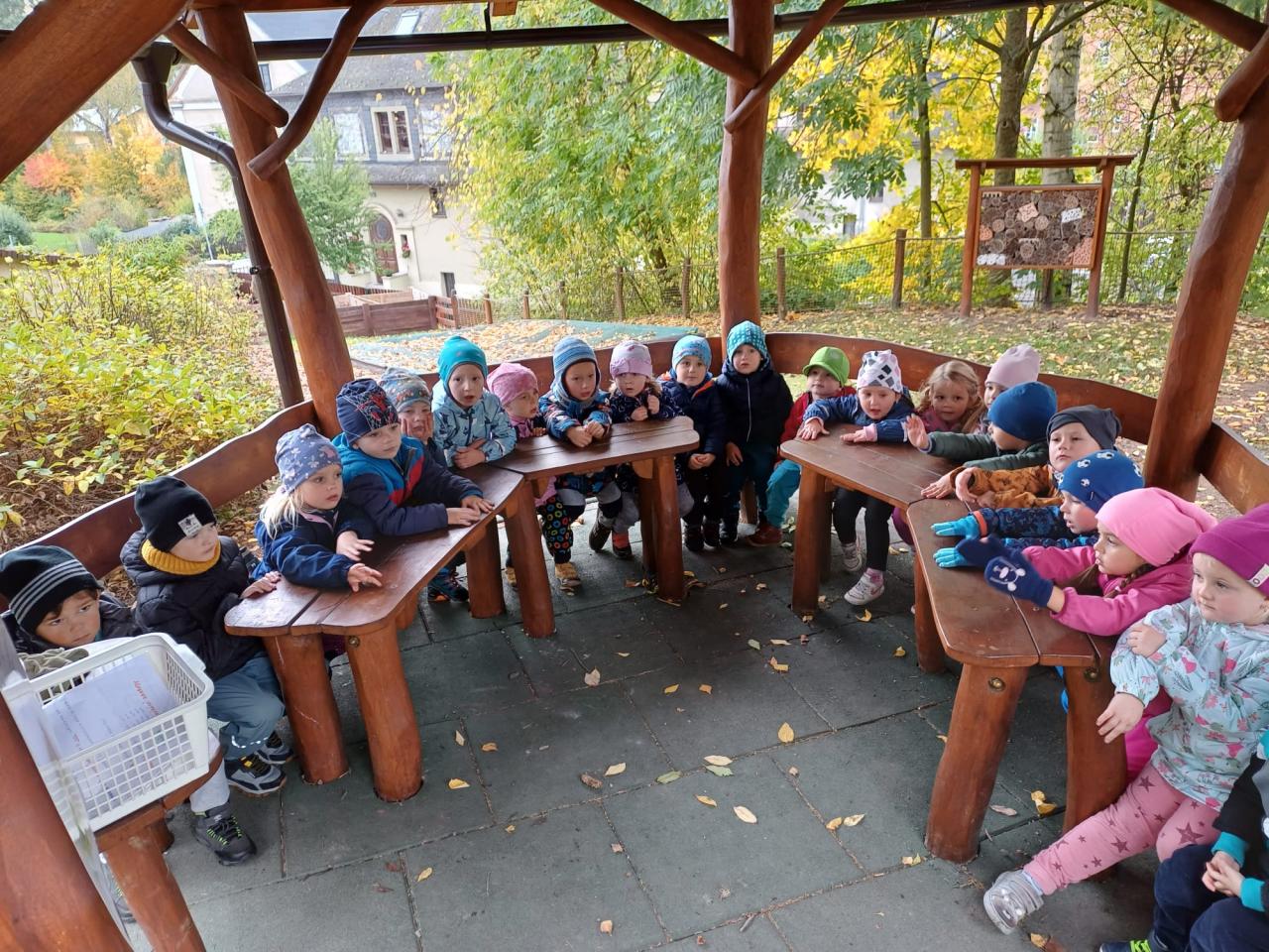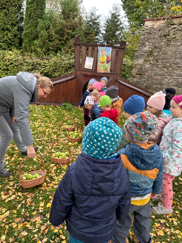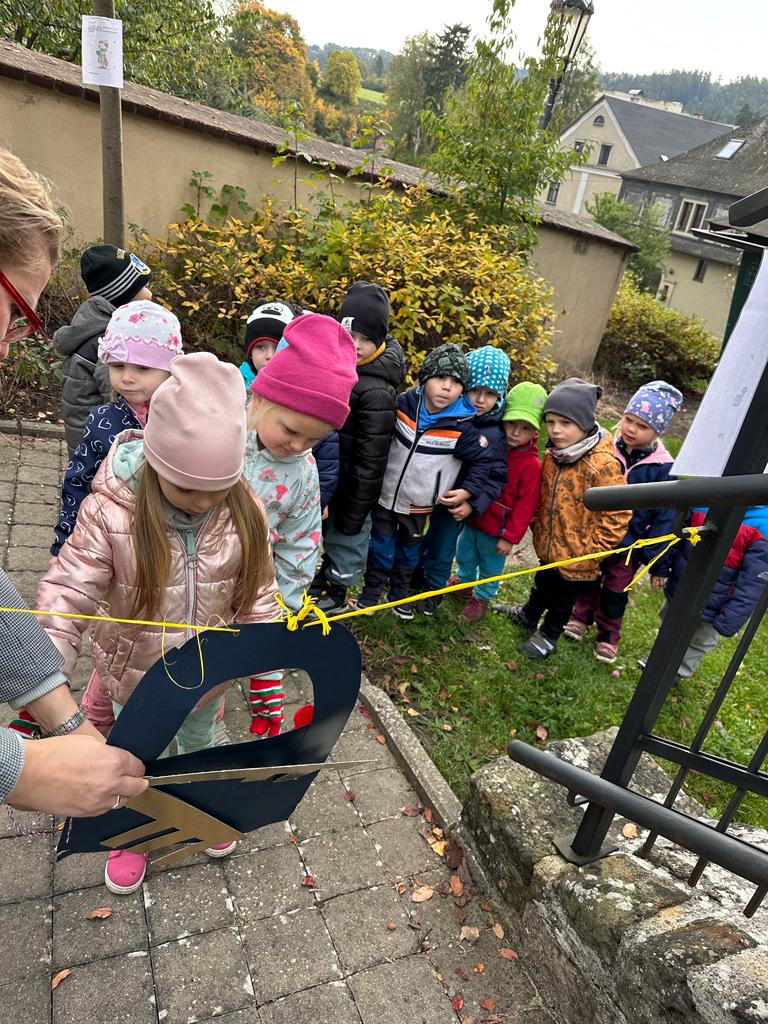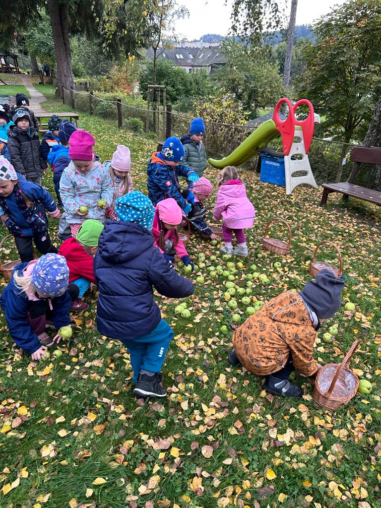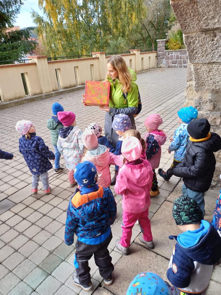 Dopolední akce zamykání zahrady se skřítkem podzimníčkem.