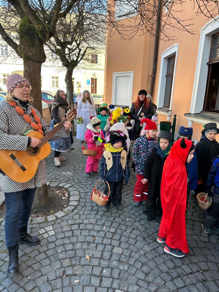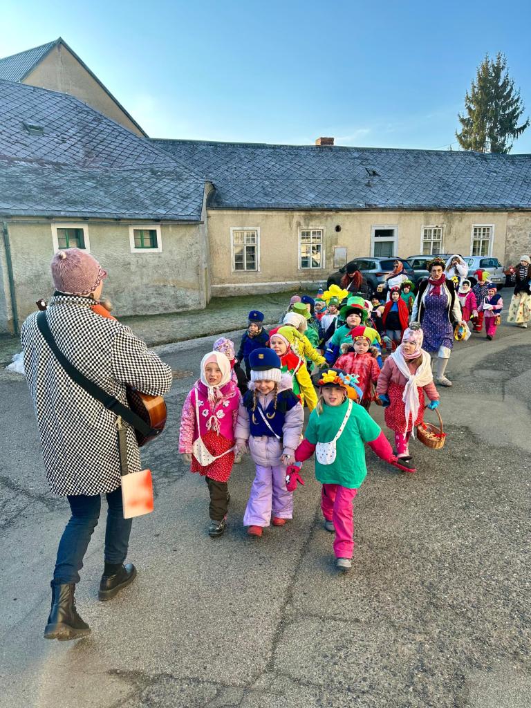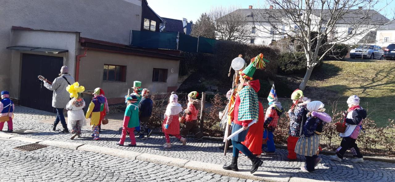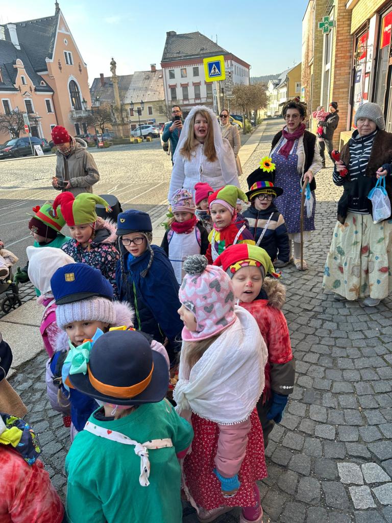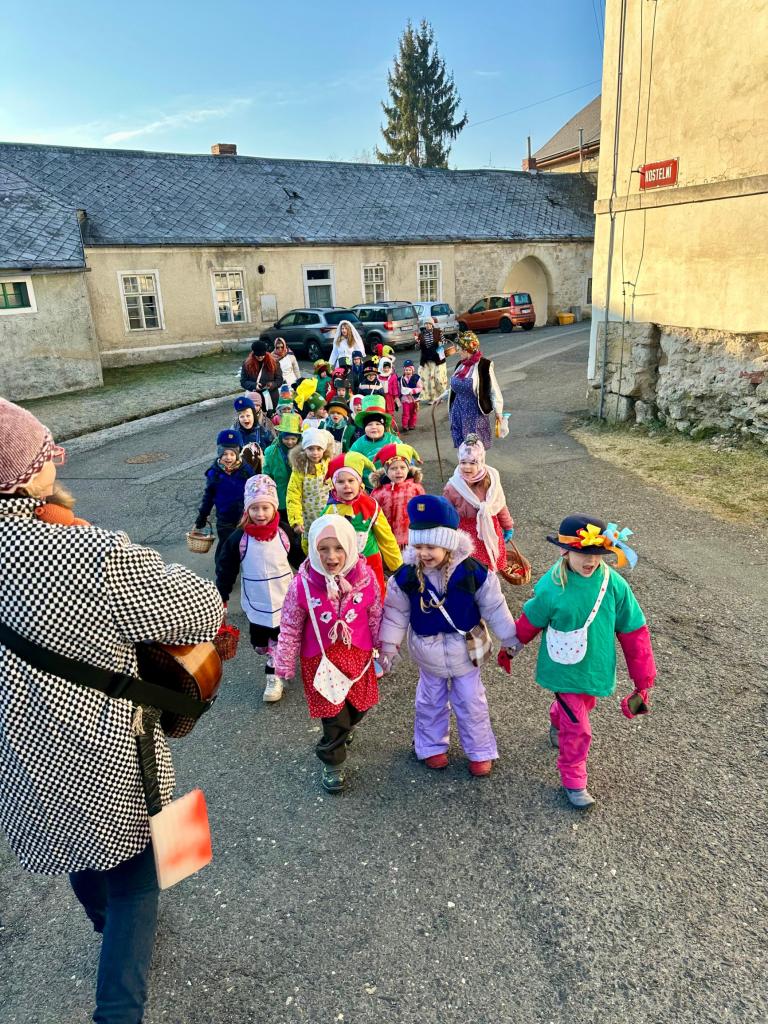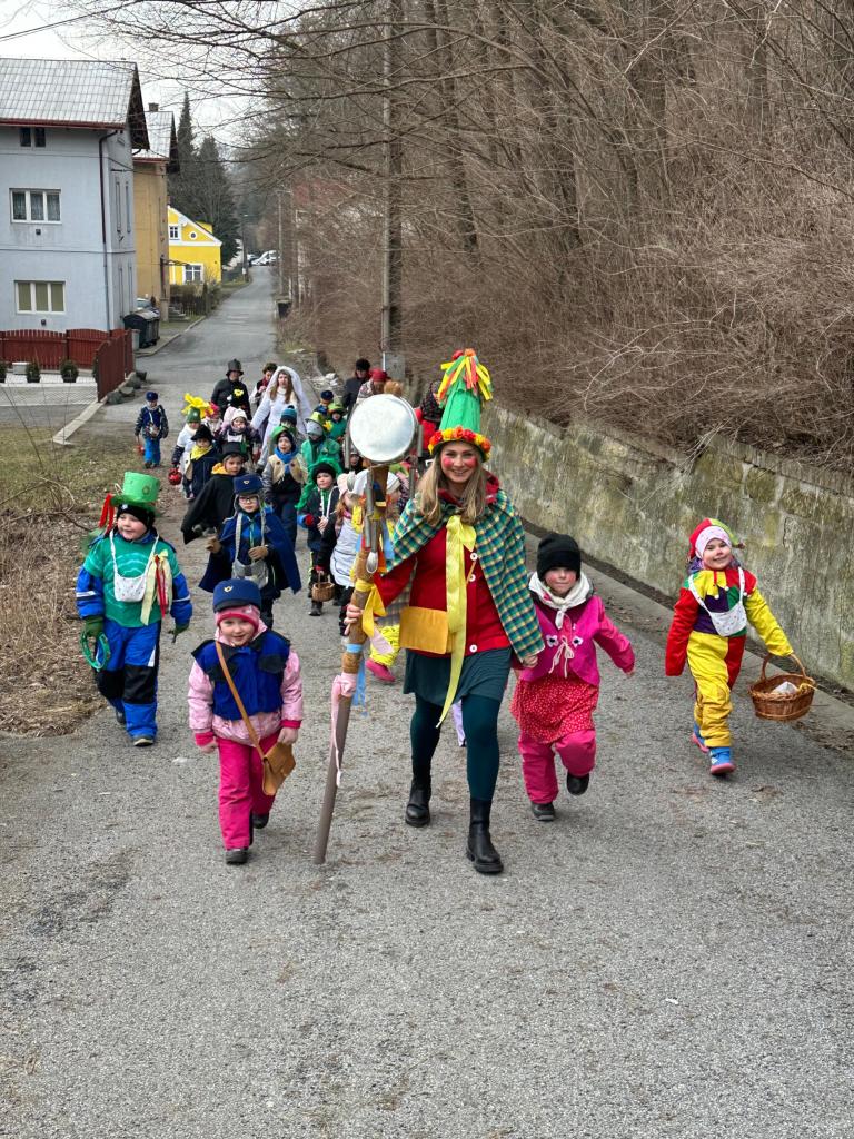 Předškoláci a jejich masopustní průvod.