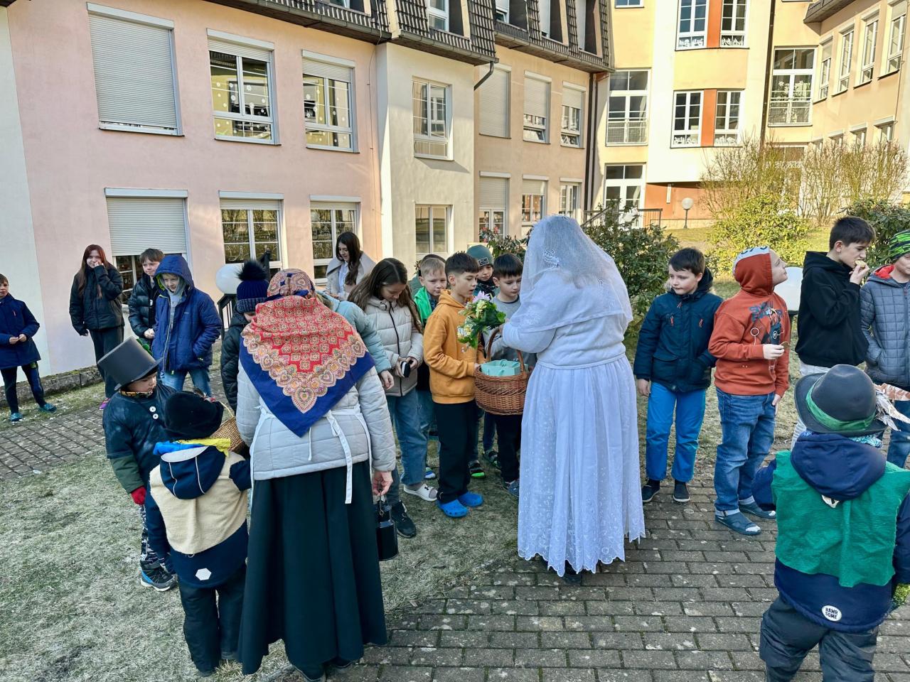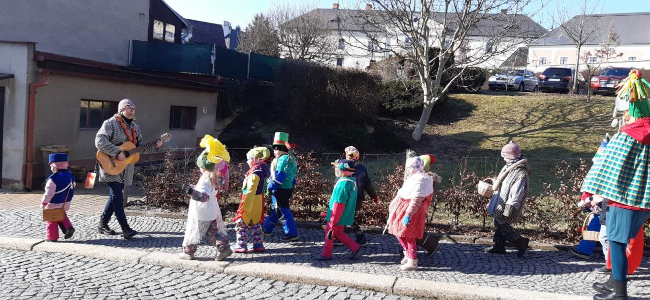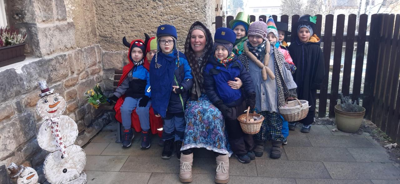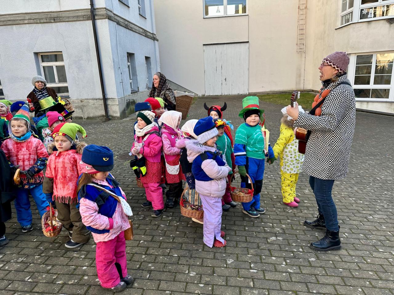 Předškoláci a jejich masopustní průvod.